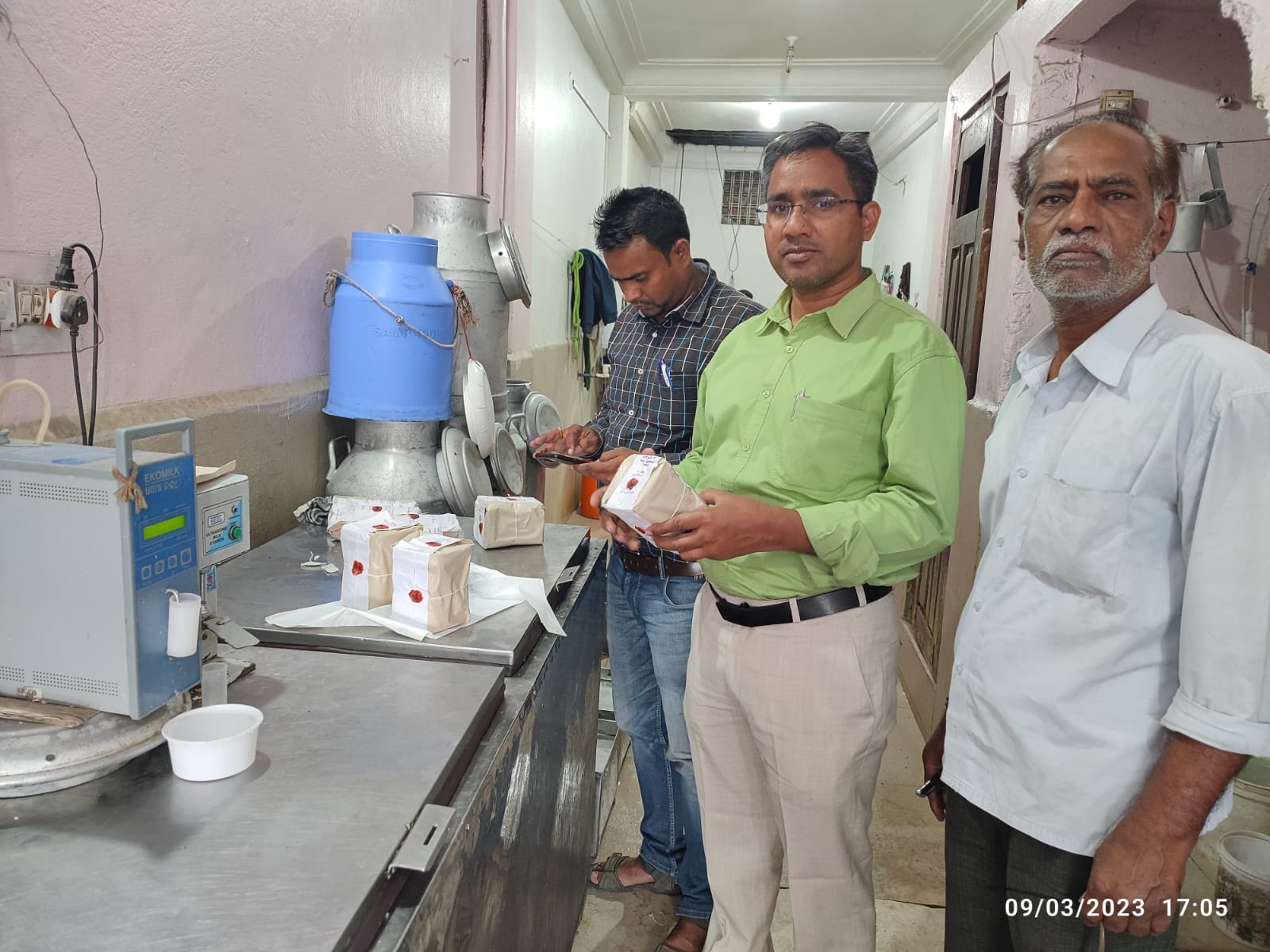 : बल्क मिल्क चिलिंग प्लांट एवं दूध डेयरियों पर दूध और दूध से बने खाद्य पदार्थों के नमुने जांच हेतु लिये