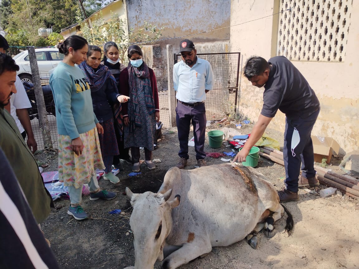 पशु चिकित्सा सर्जरी टीम द्वारा किया जटिल ऑपरेशन : गाय के गर्भ में बछड़ा मरने से गर्भाशय में फैला संक्रमण,सिजेरियन ऑपरेशन कर बचाईं जान