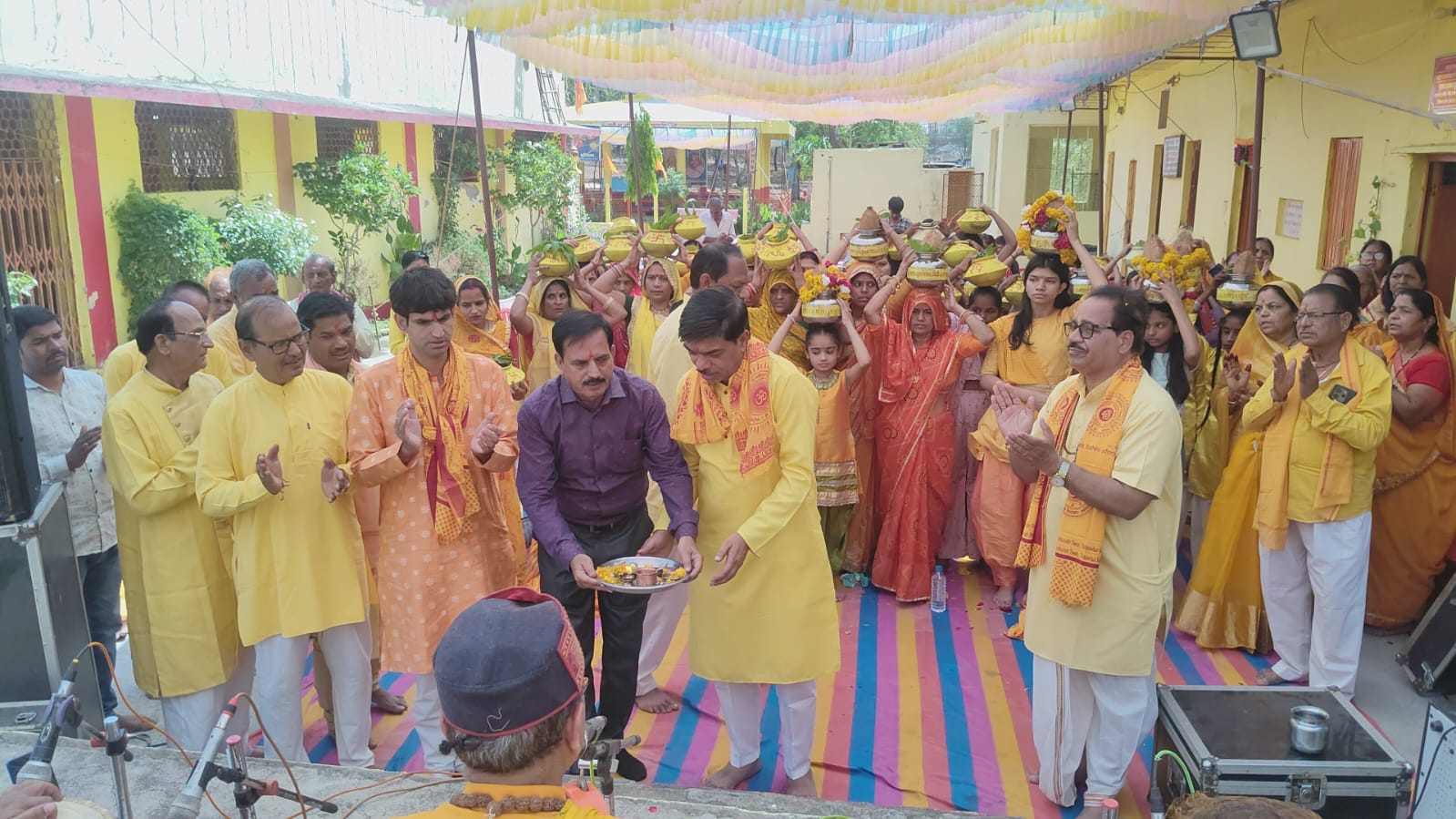 सरदारपुर। नगर के कोर्ट रोड माही किनारे स्थित मां गायत्री शक्तिपीठ पर माँ गायत्री परिवार जनों द्वारा अखिल विश्व गायत्री परिवार शांतिकुंज हरिद्वार के तत्वाधान में 3 दिवसीय धार्मिक आयोजन की शुरूआत बड़ी संख्या में गायत्री परिजनों और माता भक्तो की मौजूदगी में गायत्री शक्तिपीठ परिसर से गाजे बाजे के साथ कलश शोभायात्रा नगर के मुख्य मार्गों से निकाली गई, यात्रा के तहत सुंदर सजावट बग्घी रथ में मां गायत्री और गुरुदेव पंडित आचार्य श्रीराम शर्मा की तस्वीर विराजित थी, इसके आगे-आगे महिलाए, छोटी-छोटी कन्या बालिकाए सिर पर कलश लिए चल रही थी, माता भक्तो द्वारा रास्तेभर यात्रा मार्ग गायत्री माता, गुरुदेव के जयकारे से नगर धर्ममय हो चला था। रास्तेभर नगर भक्तो द्वारा पुष्पवर्षा करके यात्रा का स्वागत किया गया। शोभायात्रा नगर के मुख्य मार्गों से होकर सुबह 11,30 बजे पुनः आयोजन स्थल गायत्री शक्तिपीठ पर पहुंचकर पूर्व ट्रस्टी अध्यक्ष अशोक तिवारी, अश्विनी दिक्षित सहित गायत्री परिवार टोली द्वारा देवी देवताओं की आरती और पंडित अंजनी शर्मा द्वारा मां गायत्री, और गुरुदेव पंडित श्रीराम शर्मा की महाआरती उतारकर प्रसादी वितरण के साथ विश्राम दिया गया।