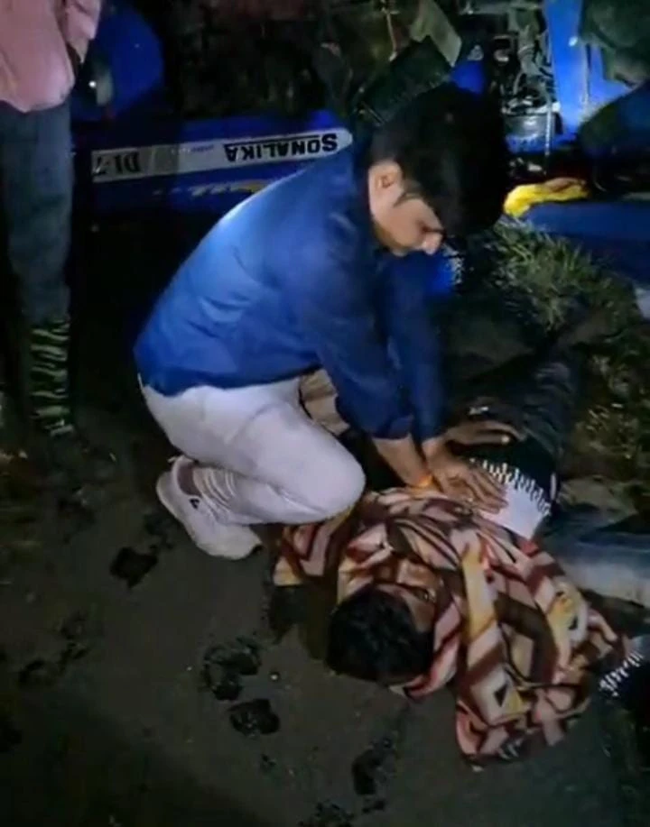 दुर्घटना : ट्रैक्टर पलटा 4 लोग दबे, रास्ते से गुजर रहे युका अध्यक्ष ओर डॉक्टर भाई ने की मदद,गंभीर घायल को दिया सीपीआर