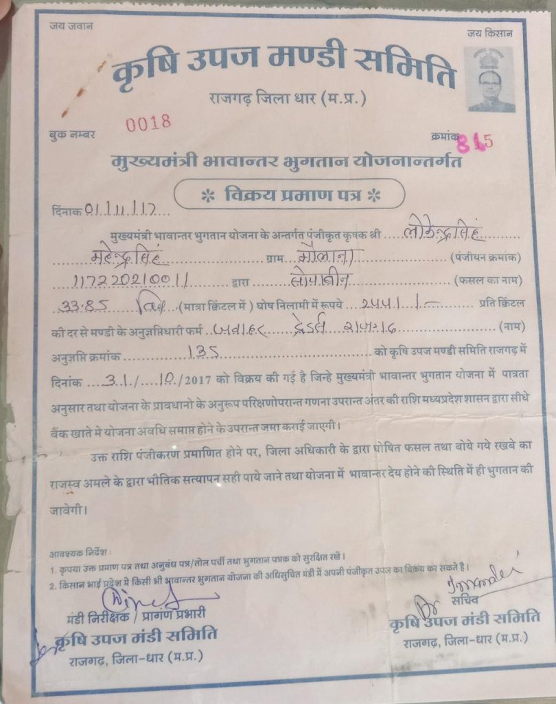 घोषणा करके भूले मामा,भावांतर का विक्रय प्रमाण पत्र संभालकर किसान कर रहे राशी का इंतजार