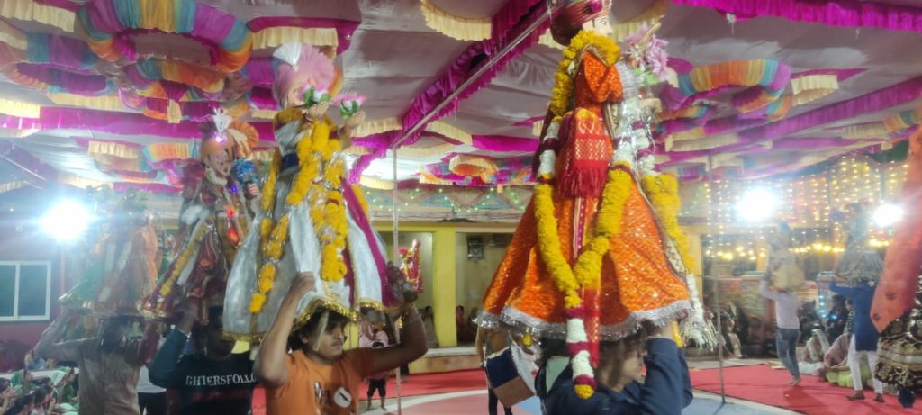 अमझेरा। पास के गांव राजपुरा मे सिरवी समाज के द्वारा गणगौर पर्व उत्साह के साथ मनाया जाता है। पूरे गांव की करीब 26 गणगौर के रथ प्रतिदिन स्थानीय आई माता जी मंदिर परिसर मे लाये जाते है जिसके बाद महिलाए, युवतियां व युवाओं के द्वारा सिर पर रखकर आकर्षक नृत्य किया जाता है। साथ हि डांडिया भी खेला जाता है। वही कई युवाओं के द्वारा पैरो मे घुंगरू बांधकर भी नृत्य किया जाता है। पर्व के दौरान स्थानीय मंदिरो पर आकर्षक विधुत सज्जा भी की गई। बड़ी संख्या मे अमझेरा सहित अन्य क्षेत्र से भी बड़ी संख्या मे लोग नृत्य देखने पहुंचते है। सोमवार को बेंड बाजो के साथ चल समारोह निकालकर ज्वारों का विसर्जन किया जायेगा एवं समाज जनो के सामूहिक भोज का भी आयोजन किया जायेगा।