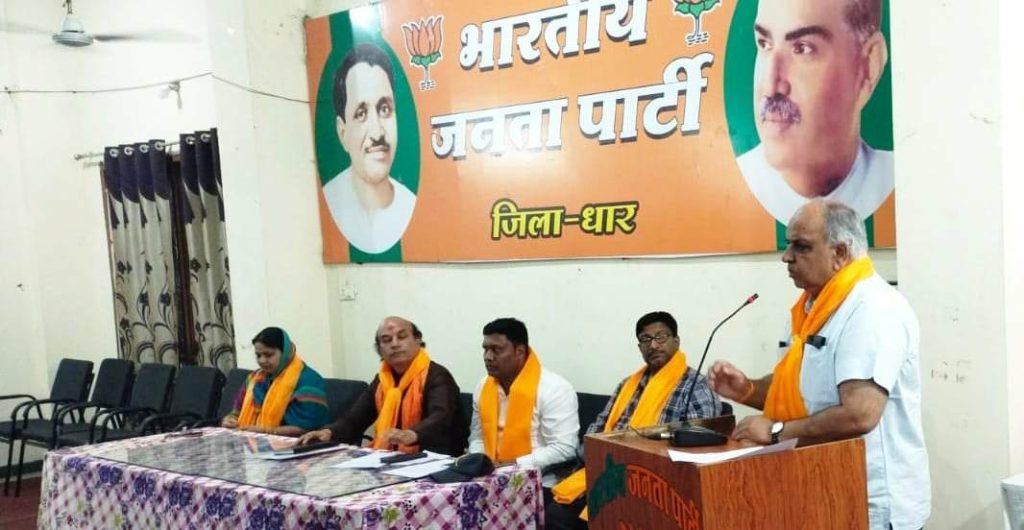 धार ! भारतीय जनता पार्टी धार नगर केसरीमल सेनापति मंडल की मंडल कार्यसमिति बैठक भाजपा कार्यालय धार पर संपन्न हुई, प्रधानमंत्री नरेंद्र मोदी के नेतृत्व में भाजपा सरकार अपने 9 वर्ष पूर्ण कर रही है इस अवसर पर 30 मई से 30 जून 2023 तक अपने मंडल, शक्ति केंद्र और बूथ पर कार्यक्रम आयोजित कर विशेष जनसंपर्क अभियान चलाया जाएगा । भाजपा प्रदेश कार्यसमिति सदस्य प पूर्व विधायक करणसिंह पवार ने कहा कि भाजपा सरकार गरीब, शोषित और वंचितों के कल्याण हेतु समर्पित सरकार है, आज देश का गौरव विश्व पटल पर लगातार बढ़ रहा है, हमारा देश एक शक्तिशाली राष्ट्र के रूप में स्थापित हुआ है, विशेष जनसंपर्क अभियान के मंडल प्रभारी मुख्य वक्ता भाजपा नेता रवि पाठक ने कहा कि भाजपा कि केंद्र सरकार में प्रधानमंत्री नरेंद्र मोदी जी ने अपने साहसिक निर्णय और सुदृढ़ नेतृत्व से जनमानस की अपेक्षाओ को पूरा कर हम संकल्प से सिद्धि की ओर बड़ रहे हैं, उन्होंने प्रधानमंत्री नरेंद्र मोदी और मुख्यमंत्री शिवराजसिंह चौहान के विकास कार्यों, ऐतिहासिक उपलब्धियों को लेकर बूथ स्तर पर व्यापक अभियान चलाकर जन जन तक पहुंचाने का आह्वान कार्यकर्ताओं से किया ।