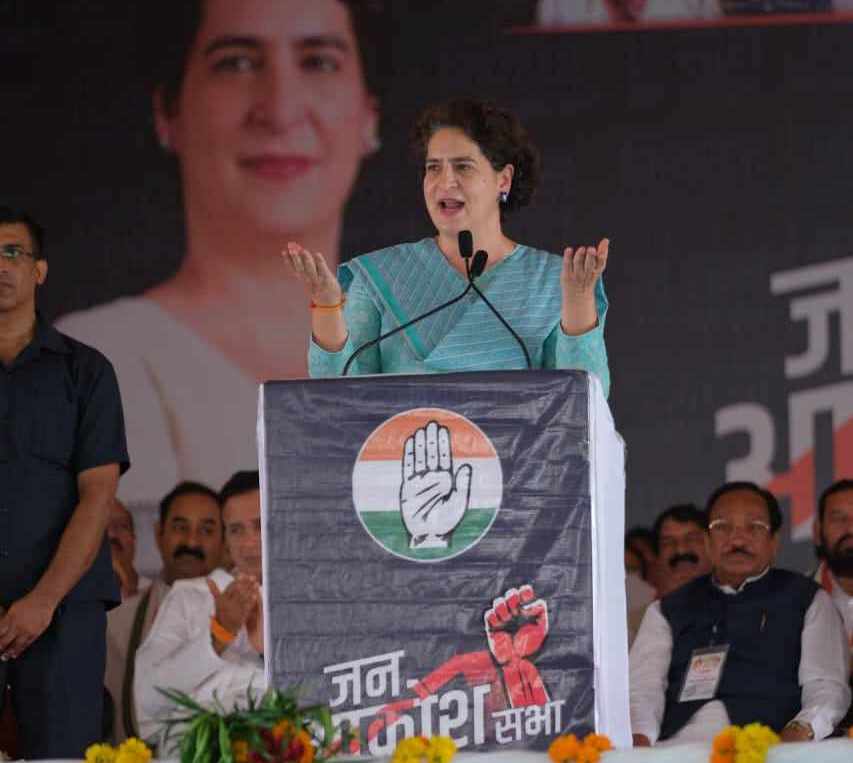 प्रियंका ने महिलाओ से कहा की रुकमणी जी की तरह रथ की लगाम अपने हाथो मे लो अर्जुन की तरह लक्ष्य बनाकर निशाना लगाओ। यह चुनाव मप्र के भविष्य का आपके भविष्य का है। शिशुपाल के अत्याचारो का घड़ा भर चुका है।