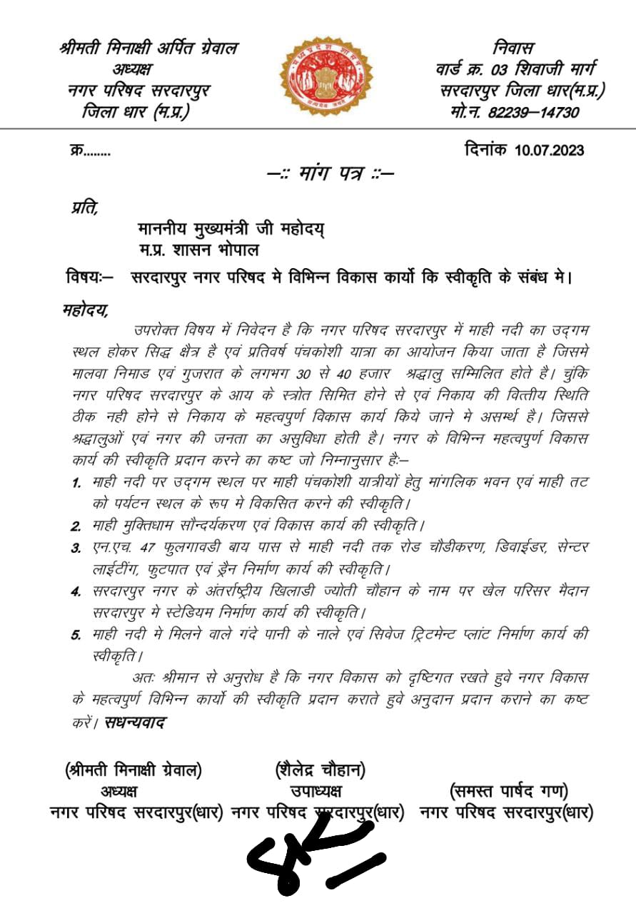 : जनदर्शन पर आए सीएम को नगर परिषद अध्यक्ष एवं उपाध्यक्ष ने सौंपा मांग पत्र,अंतर्राष्ट्रीय खिलाड़ी ज्योती चौहान के नाम पर खेल परिसर मैदान सरदारपुर मे स्टेडियम निर्माण कार्य की स्वीकृति सहित विभिन्न मांगों की स्वीकृति की रखी मांग