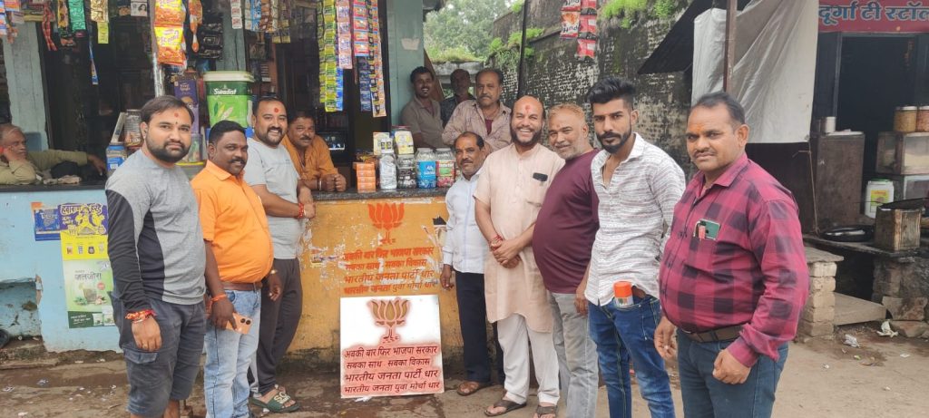 अमझेरा। भारतीय जनता पार्टी के कार्यकर्ताओ के द्वारा दिवाल लेखन किया गया। सदस्यता अभियान के अंतर्गत लोगो को भाजपा सरकार द्वारा चलाई जा रही जनकल्याणकारी योजना से लोगो को अवगत करवाया गया एवं बस स्टेण्ड, सदर बाजार आदि क्षेत्रों मे अबकी बार भाजपा सरकार एवं सबका साथ सबका विकास के नारे एवं पार्टी के चुनाव चिन्ह कमल के फुल को बनाया गया। इस दौरान रवि पाठक, भगवानदास खंडेलवाल, नीलांबर शर्मा, मांगीलाल सोलंकी, शिवा मकवाना, शुभम दीक्षित, नारायण दीक्षित, विकास चौहान आदि अन्य उपस्थित थे। उक्त जानकारी मीडिया प्रभारी अभिजीत पंडित द्वारा दी गई।