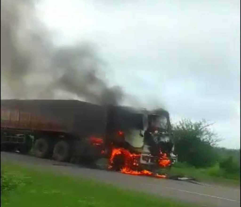 : चलते ट्रेलर मे लगी आग