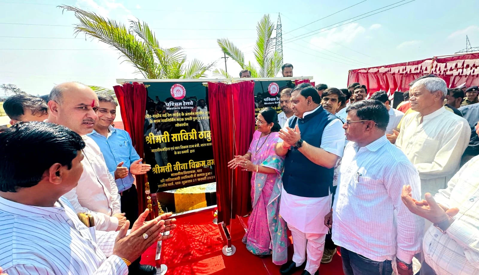 मैदान में ही ग्राम पंचायत अमझेरा द्वारा बनाये मंच पर जिला पंचायत अध्यक्ष सरदार सिंह मेडा सहित पूर्व विधायक वेलसिंह भूरिया, मण्डल अध्यक्ष विजय दीक्षित,