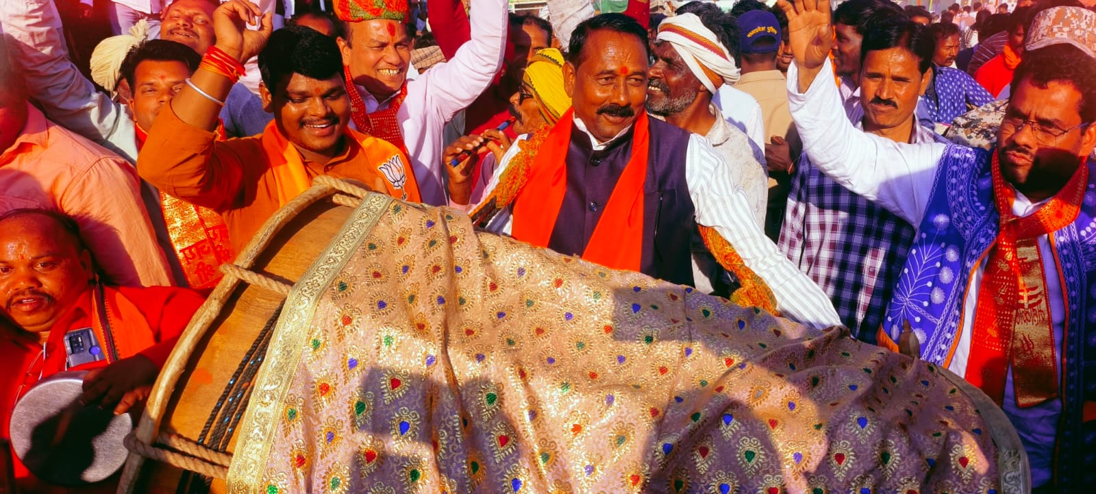 धर्मेंद मण्डलोई, सुनील गामड़, रवि पाठक, भगवानदास खण्डेलवाल, सरपंच प्रतिनिधि शिवा मकवाना, अर्पित शर्मा, जगदीश हजारी आदि अन्य उपस्थित थे। भाजपा नेताओं ने भी मांदल की थाप पर नृत्य किया।